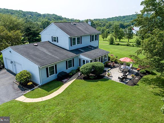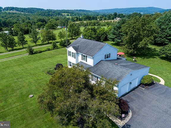 Your wait for that move-in-ready house in the country is over! Situated on 2 1/2 acres of both cleared and wooded areas, this beautiful home has been exceptionally well-maintained by its original owners. Spacious rooms throughout provide comfortable living and entertaining space. The large living room features crown molding, newer carpeting, and replacement windows, as does the adjoining dining room with its picturesque view of the professionally landscaped patio area. The eat-in kitchen has 28 handle cabinetry, deep double bowl porcelain sink, tile backsplash, newer appliances, and a sizeable pantry. There is also room for a full sized table plus a convenient half bath a few steps away. From here, step down to the spacious family room. Enjoy this room for everyday family living or as the center of indoor entertaining, as it adjoins the three seasons room. This wonderful space features three walls of windows/screens with shades, a ceiling fan, two skylights, and window accessibility to the kitchen to pass through food and beverages. Step out onto the 12’ x 20’ EP Henry paver patio and delight in the quiet and views of the changing seasons. Beyond the patio is a large cleared area perfect for a garden, lawn games, or better yet, that pool you’ve always wanted. Past this open area is a cleared space surrounded by trees where you could enjoy a fire pit, picnic area, play corn hole, practice yoga, or just take joy in a quiet spot to sit and relax. Keep an eye out for the occasional deer that may visit from the wooded portion of the property beyond! There is also a shed for storing lawn or sports equipment. Back inside and up the wide staircase, the second floor offers the primary bedroom with bump out sitting area, two closets, and attached bathroom. Two additional bedrooms, a full bath, large linen closet, and all replacement windows complete this level. Ceiling fans throughout both levels of this home circulate the air and contribute to year round heating and cooling efficiency. In addition to the fifteen replacement windows, all interior doors and most light fixtures in the home have been replaced. The full basement features a workshop space, laundry area, additional large storage area, a walk-in closet for off-season clothing, and walk up stairs to the backyard. The 200 amp electrical system features a hookup for the included generator. The attached two car garage with interior access round out the amenities of this outstanding property. Located in a serene country setting yet easily accessible to shopping, schools, recreational areas including the Green Lane Park system, and major arteries, this property leaves nothing to be desired.