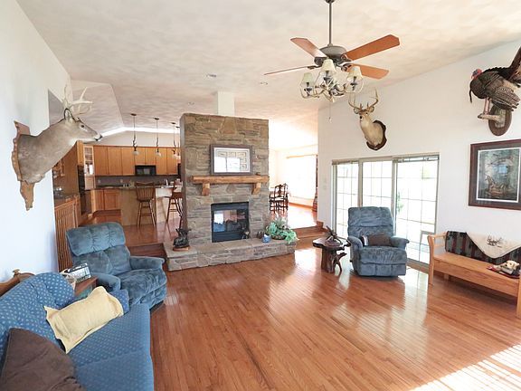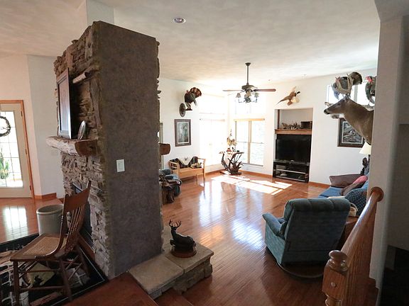 Beautiful home setting on acreage on west fallen lake.So many extras do not have room to include. Features: 3 large bedrooms, 2 sided real stone fireplace, vaulted ceilings, lots of oak cabinetry with large U island, extra deep granite sinks, 6 paneled wood doors throughout, all season Sunroom overlooks beautiful rock waterfall. Two arches on lower level walkout with stamped patio. Upper level has a 30' x 16' patio, lots of recessed lighting, all kitchen appliances stay, attic fan. Homeowners Association Dues $150 annually. Provides access to a beautiful clubhouse that sits behind the lake, perfect for entertaining large parties, graduations, birthdays or family reunions.