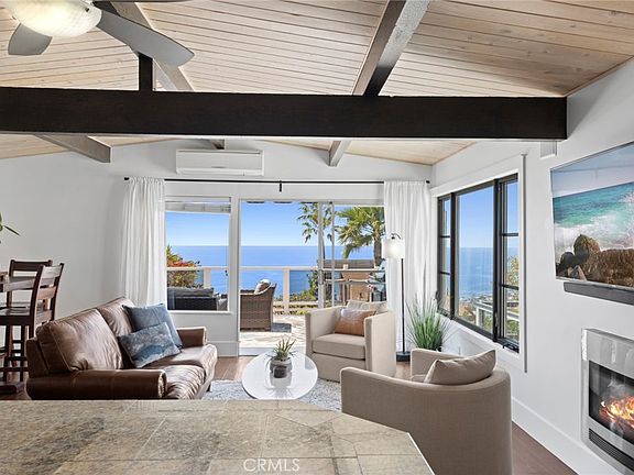 The epitome of refined coastal living, this immaculate residence offers sweeping views of the Pacific Ocean, Catalina Island, and the iconic Southern California coastline from its main living areas. An open-concept layout seamlessly connects the living and dining rooms to an expansive entertainer’s deck, where panoramic ocean vistas take center stage. Accented by exposed beam ceilings and walls of glass, the interiors are thoughtfully designed to maximize natural light and uninterrupted views. The adjacent gourmet kitchen is equipped with top-tier appliances and a breakfast bar ideal for casual dining and everyday elegance. Complementing its stunning natural surroundings, the home features lush backyard landscaping, tastefully upgraded bathrooms, and versatile living spaces throughout. Indoor-outdoor flow is effortless, with multiple access points to generous decks on each level—perfect for year-round entertaining. The residence comprises three bedrooms and two-and-a-half bathrooms, including a main-level primary suite complete with a spa-like ensuite and walk-in closet. A lower-level bedroom opens directly to the serene backyard, offering added privacy and flexibility. The oversized driveway provides ample parking in addition to the garage. Perfectly situated just moments from Moulton Meadows Park, scenic hiking trails, tennis courts, and only minutes from Laguna Beach’s renowned dining, shopping, and coastline, this home delivers the best of California living.