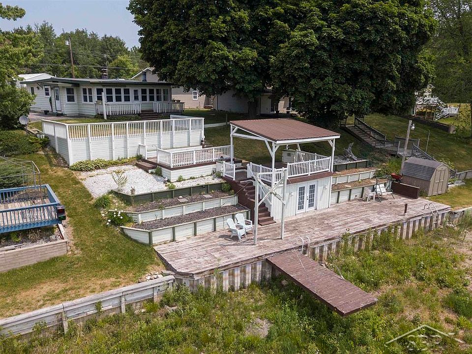 MAKE MEMORIES ON MCKIMMY! This 3 bedroom 1 full bathroom home has so many beautiful spaces to entertain. The kitchen, dining room and living room are one big space full of newer vinyl windows and a view that is indescribable. Down the hall way you'll find the 3 bedrooms, the bathroom and laundry room. A small basement area houses the utilities so they don't take up space on your main level. The 1.5 car attached garage is quite large and has a lot of room for storage. Now for the truly special part...how about a 5 level deck/patio space for enjoying the lake when it returns? These 5 levels all lead down to a cantilevered dock, 12x12 bath house/storage space and a newer vinyl seawall. You really need to experience this first hand so call today for your private showing!