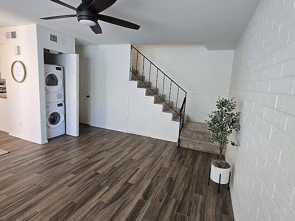 REMODELED* CLEAN * Laundry & Refrig INCLUDED * Spacious wood laminate 1st floor with open floor plan and powder room. * 2nd Floor 2bedrooms and full bath. Neutral carpet less than 1yr old * Garage without door is Assigned and Has Private Storage. * Large patio! * Home is across from POOL Move in ready this week! Water/Sewer/Trash Included!