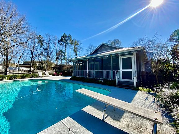 This home sits back off of Merrimac Drive and has a paved driveway that leads to the home. Upon entry of the driveway will pass a small pond and large front yard. The home features 1992 square ft of living space. It has 3 bedrooms and 2 full bathrooms. As you enter the home from the large porch you step into the breakfast area and kitchen which opens up to the living room that features vaulted ceilings and many windows.The home also features a private master wing with a spacious master bedroom and walk in closet, the master bathroom has separate shower, soaking tub and double vanities. The master has double doors that open onto the screened porch over looking the in ground pool. Back inside you will find two more bedrooms down the hall and another full bathroom. There is a sunroom/office space with a built in pull out bed. Outside you will find a shop with a large garage door and the front of the shop has a screened area for cooking or relaxing.