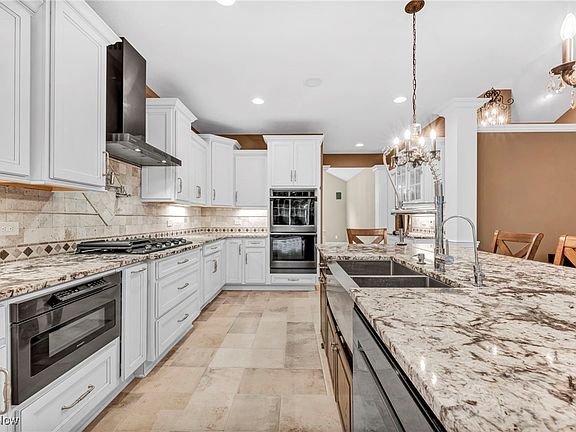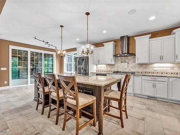 - Description: Built in Appliances with Custom Built Kitchen with Porcelain Italian Tile Flooring, Island with seating and farmhouse sink, Pendant and Recessed Lighting,Flooring: See Remarks