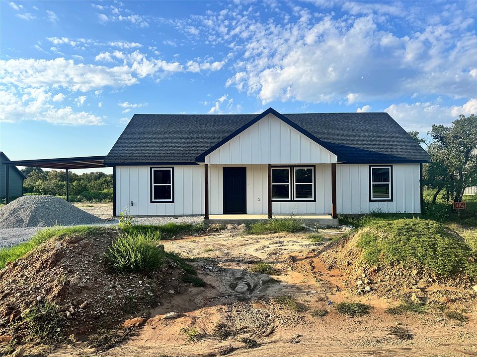 This is a Newly built home that sits on just over 1 acre, NO HOA! This 3 bedroom 2 bath home has custom cabinets, island in kitchen, granite counters, stainless steel appliances, and tile throughout with carpet in bedrooms. The master bath has his and her sinks and a walk in shower. Large laundry room with a door leading to a 2 car carport. Close to schools and close to Weatherford or Ft Worth. Come check this property out.