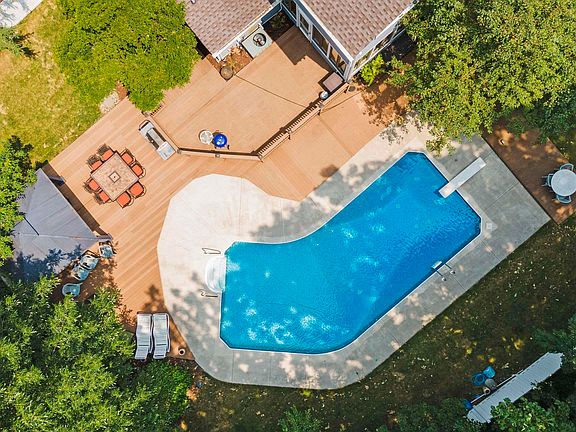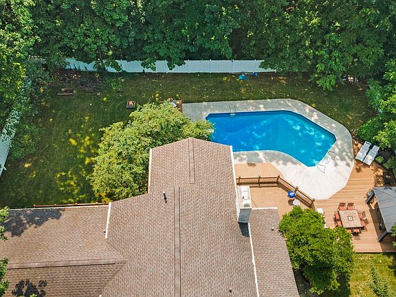 Do you need more space? Do you like to entertain? This home is for you! Over 4500 square feet of living space on a wooded .7 acre lot in NACS! Highlights: Mf REAL hardwood stairs & mfr hardwood on all main areas. SPECTACULAR great room with catherdral ceiling, 1st of 3 gas fireplaces, built-ins, and wall of windows w/full length balcony overlooking the backyard. FABULOUS kitchen with custom cabinetry that includes pull-outs in all the lower cabinets, pantry cabinet, small appliance strorage, built-in desk, 8ft island and granite counters, double ovens & gas range. The dining area is open to the kitchen and features a 2nd FP w/connecting SUNROOM for year round enjoyment. The upper level has 2 BR's including the HUGE master suite with a 3rd gas FP and a sitting room! Bedrooms 3 & 4 are found on the finished lower level along with a flex area suitable for an office, crafting, reading etc., 4th full bath and a separate lg. open basement room. Add'l features and updates included all 4 baths recently remodeled (2023), a gazebo & hot tub, privacy fence, in-ground pool, trex decking, tankless water heater, pool heater (2021); pool pump motor (2022); 50-year shingles, siding, stone, gutters & guards & light posts (2016). Home Warranty included.