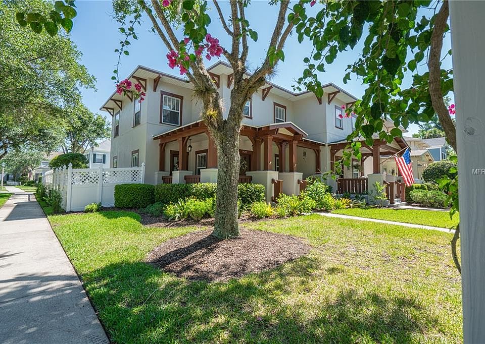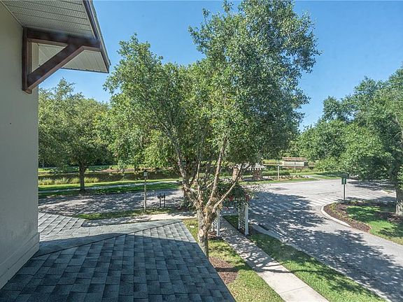 Charming water view and lots of privacy. This 3 bedroom 2.1 bath has the convience of being on a corner lot with a large park on one side and pond in front. Watch the deer in the evening wander from the woods to drink from the pond on your extended front porch. Extraordinatly large fenced back yard with room to add a second garage or guest cottage. Back yard has a new brick patio, multiple fruit trees and garden with mature landscaping. Interior has upgraded all new stainless LG appliances in the kitchen, ceramic tile throughout the first floor and new wood/vinyl flooring on the second floor. Master bedroom enjoys a panoramic view of the water and park as well as the extraordinarily large walk in closet. Have no concerns for caring for the exterior of this home since the new roof, exterior painting and lawn care is all inclusive in the monthly maintenance. Roseville corner is a wonderful family oriented neighborhood of Celebration and would make an excellent vacation home or enjoy the Florida sunshine all year round.