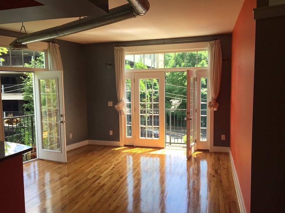 Fabulous sunny corner unit on top floor, right on Piedmont Park! Nice hardwood floors throughout, granite / stainless steel kitchen, 3 balconies with skyline view. This quiet spacious unit (1120+ square feet) captures all of the charm of living in town with bright loft style open living space, newly refinished hardwood floors, updated master bathroom and high ceilings. The 2nd bedroom is perfectly suited to be a guest bedroom/ study/ home office. Don't miss the building rooftop deck/grill that is great for entertaining! Walk to everything Midtown - Piedmont Park, Restaurants, shops, the Fox, Museums, Music, Botanical Gardens, Marta and more! PROPERTY FEATURES: 1120+ square feet Living room Dining room Master bath Pantry Range / Oven Dishwasher Balcony Deck or Patio Central A/C Hardwood floors throughout Elevator Water included in rent. 2 year lease. 1 garage spot. Unfurnished. Furnished options available for additional cost.