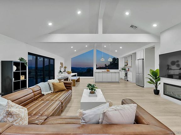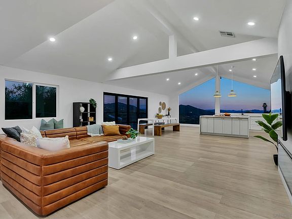 Welcome to your new home, a beautifully renovated 4-bedroom, 3-bathroom retreat nestled in the tranquil hills of Rainbow, Fallbrook. Set on nearly 2 acres of panoramic beauty, this home combines modern elegance with the peaceful charm of country living. Step inside to discover an open-concept layout filled with natural light and sweeping views from every angle. The expansive living area flows seamlessly into the dining space and a chef-inspired kitchen, complete with stainless steel appliances, abundant cabinetry, hidden pantry and generous counter space — all framed by La Cantina–style doors that open to stunning outdoor vistas and the attached deck. The primary suite is a private oasis featuring a spa-like en-suite bathroom with a soaking tub and an oversized walk-in shower. Every bathroom throughout the home showcases contemporary finishes and thoughtful design. Enjoy the convenience of two laundry areas, two garages (one attached and one detached), and ample parking and storage — perfect for hobbies, guests, or multi-generational living. Your pets will love it here too — the property is pet-friendly with fencing and plenty of space to roam. Whether you’re unwinding on the balcony with panoramic views, hosting under the stars, or simply soaking in the peaceful views, this property offers the ideal blend of modern comfort and rural tranquility.
