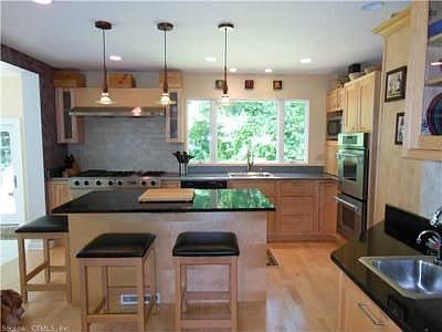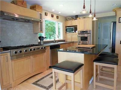Mystic without the hustle and bustle! This custom contemporary home nestled on a private 1+ acre lot offers 3 Bedrooms and 3 Bathrooms with an open concept layout, gourmet kitchen, hardwood floors, expansive Ipe patio, huge master suite with balcony and tons of natural light. Don't miss an opportunity to own a home on the most scenic road in Mystic!