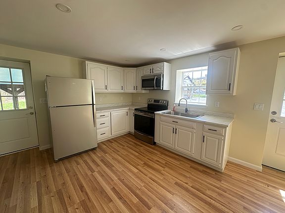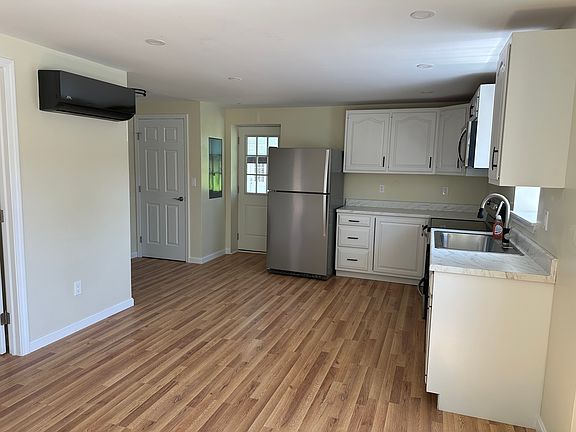 Newly constructed 1 bedroom cottage with open living floor plan. New vinyl flooring throughout, and loads of windows for a light and bright home. Open chefs kitchen, plenty of closets for storage, and new high efficient split units for heating and cooling. Outside there's a wonderful porch off the kitchen and deck off the primary for enjoying your morning coffee. Exterior garage for more storage available as well. Ample yard space for relaxing or activities. Lawn and snow included. One year lease. Tenant pays electric and garbage. Half month broker fee applies.