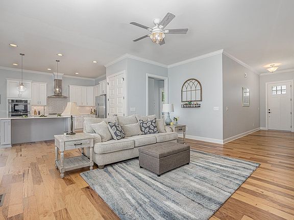 Your next home is ready & waiting for you! Located within Cary’s city limits, this one has the feel of a quiet, country setting with the conveniences that this perfectly situated community provides. The extensively landscaped lot is a showstopper! A deep rocking chair front porch will have you sitting & staying awhile. Inside, you’ll find stunning, hickory, site finished floors that lead to a large, open concept living area with gas fireplace & lots of natural light. The gourmet kitchen has beautiful quartz countertops, detailed tile backsplash, a gas stovetop, wall ovens, under cabinet lighting, a stainless steel range hood & stainless apron sink. Past the dining area is a cozy, relaxing sunroom for reading or catching up with friends. This split floor plan ranch provides the perfect amount of privacy with the owners’ suite in the back of the home. There, you’ll find a tray ceiling, custom closet, & spa like ensuite with tiled, walk in shower & garden tub. From its own door, you can easily access the covered back deck, overlooking the gorgeous backyard. Huge perk, HOA maintains and mows the grass as well!!