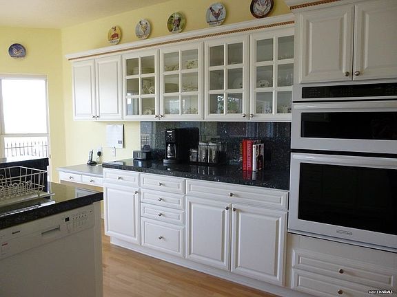 Absolutely phenomenal views - mountains, valley, river, golf course! Exceptionally clean home with high end appliances and finishes. Nine foot ceilings throughout with tons of lighting, two solar tubes and huge picture windows every where. Easy maintenance exterior w/stucco, large patio, rock and drip system. 10 outside electronic shutters. 2 car garage with one taller door for boat, trailer, tall truck etc. Tons of closet space in the home & workshop or storage in the garage. Rare view and home. Must see!