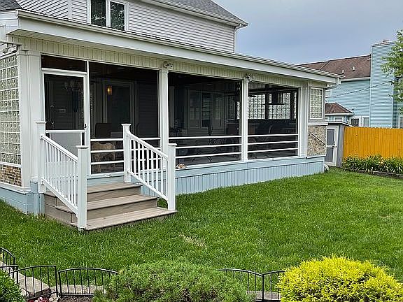 - large, screened in back patio with outdoor kitchen and Jenn Air grill