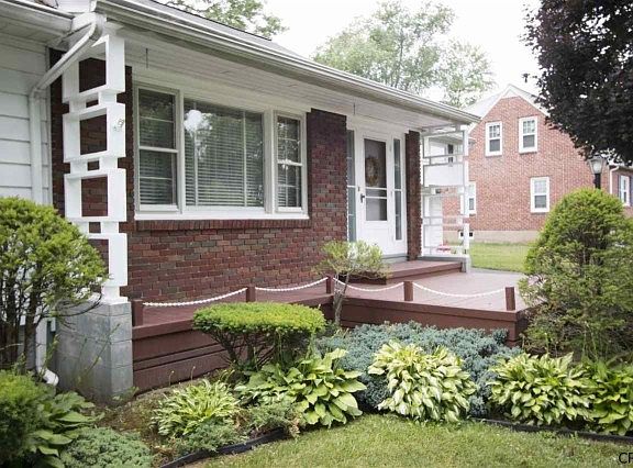 Unique Opportunity "Diamond in the Rough" Ranch Style Home with second floor Living Room and Dining Area with neutral tone carpeting over hardwood floors. First floor features family room with spectacular floor to ceiling gas fireplace plus bedroom or den that could be used as a Master Suite or studio. Storage includes cedar lined closets and walk-in attic. In-ground sprinkler system in front yard. Private, picturesque, park-like yard. Convenient location.