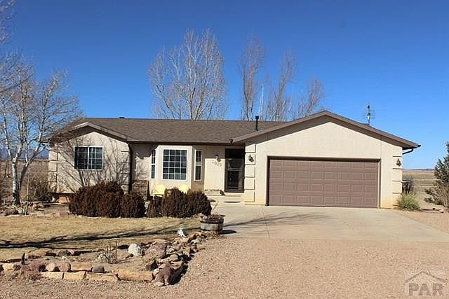 Beautiful unobstructed views of Pikes Peak, that will never be blocked by building, plus views of the Greenhorn mountain range abound from this fabulous 5 bedroom, 3 bath, 2 car garage home located in Pueblo West Acreage. The interior has just been recently painted, the hardwood flooring in the kitchen has been refinished, and the roof was new this past fall. Plus there is walk-out basement. Outside you will find 2 sheds, lawn front and back with a sprinkler system. What more could you ask for...move-in ready!