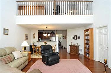 Better than new! Neutral D?cor Open and Spacious floor plan! First floor master suite! Hardwood flooring in Family, Dining Rooms, Kitchen, Powder Room & Foyer. Upgraded carpeting & padding in all bedrooms & Loft. Kitchen w/granite counter tops, handsome wood cabinets some stainless steel appl., breakfast bar. Two foot extension in family room and garage. First floor laundry, Sliding glass door over looks a private patio and back yard End Unit Unbelievable amount of storage space throughout-Great Location
