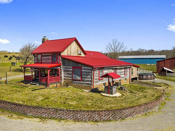Original log cabin on historic register, 179 years old. 3 bed, 2 bath, updated kitchen & bath. Large basement, 2 year old roof, 2 car garage, fenced pasture 4.7 acres, large barn, above ground pool & hot tub hookup. Living room with stone fireplace, large bonus room & covered back porch, new stainless appliances & much more!