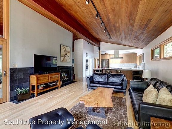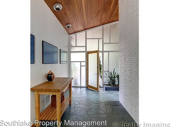 Stunning Mid Century modern with pool - Stunning Mid- Century modern has undergone a complete remodel. This contemporary home is a must see! The great room features vaulted ceilings with wood beams, hardwood floors, gas fireplace and views of the professionally landscaped property and swimming pool. The kitchen is complete with high end stainless steel appliances, an abundance of cabinets and breakfast bar, overlooking the great room. The formal dining room has a built in sideboard for serving platters and storage. The fireplace adds a formal, yet cozy feeling to the room. The master suite has French doors leading to the backyard swimming pool. Master suite also features a walk in closet and serene, spa-like bathroom. There are two other bedrooms and full bath with separate shower and deep soaking tub. The laundry room has a Bosch washer and dryer set and many builtins for storage. This is a must see property! (RLNE3005453)