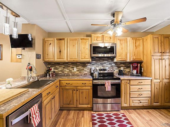 Gorgeous townhome in Lakewood's popular Pheasant Creek community. New west windows and front door will welcome you into the fully remodeled kitchen that's been completely opened into a spacious flowing main area. With new hardwood cabinets, stone-fleck laminate countertops, tile backsplash, large Kohler stainless-steel sink, stainless-steel appliances, and paneled ceiling, this practical kitchen design celebrates the cooking experience and a roomy area to congregate. The main level with laminate wood flooring opens onto an outdoor deck living room that's perfect for beautiful Colorado weather. Upstairs, the master bedroom features vaulted ceilings with skylights as well as its own full master bath. Front bedroom with double closets also has its own full hall bathroom. Open the pull-down attic access and see the built-in storage for maximum space-efficiency. The finished basement has a convenient half-bath, stone fireplace with gas insert, and walkout access to storage, yard, and garden area. The large finished laundry room offers stacked washer/dryer, additional storage space, and worktable. Room A/C units help keep each area at ideal temperature. Newer carpet throughout. Seconds from the Bear Creek Walkway and trails, and only minutes to the mountains and Denver. This is the ideal location you've been waiting for!