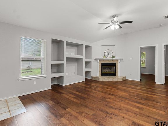 CUTE CUTE CUTE! This adorable 3 bed, 2 bath home is the perfect home for a family or first time home buyer! Walk inside and see stunning new floors and fresh paint - it's move-in ready! The kitchen is spacious with stylish paint choices and plenty of cabinet and countertop space. The kitchen flows into the dining nook and spacious living room. The living room features a wood burning fireplace, a mantle to hang your TV on, and built-ins to decorate. The primary bedroom features a nice tray ceiling and it's own full bathroom. Outside, the home sits on a large lot with a detached garage close by. Enjoy the shady mature trees and the lush greenery. Only minutes away from downtown Tyler and UT Health hospital. Located in Winona ISD. Hurry, this home is priced to sell fast!