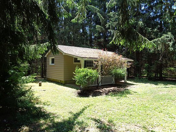 Tired of those cookie-cutter layouts? Well, this will break the mold with a unique floor plan that offers lots of options for your living style. There are multiple living spaces, allowing for a kid's play area, a hobby room, a TV room, or a home office. Multiple fireplaces can make each room warm and cozy. And the bedrooms are spacious and separated at opposite ends of the house. Great yard, privacy and a wooded setting surround the house. There is even a little cabin/in-law quarters out back. Worth a look!