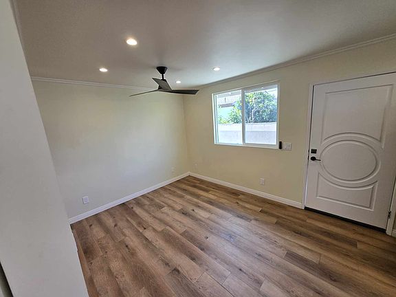 This brand-new, never-before-lived-in ADU offers 592 sq. ft. of comfortable living space in a peaceful neighborhood tucked in a quiet corner of Buena Park, right on the edge of Cypress. Enjoy the serenity of living in a backyard, away from street noise, with a quaint side yard entrance for privacy. The spacious living room features two ceiling fans and opens to a kitchen equipped with an electric stove, dishwasher, and garbage disposal. Just off the kitchen, you'll find a small utility room with in-unit washer/dryer, providing extra convenience. The unit also includes a bathroom and a cozy bedroom, all with modern laminate flooring. Utilities: Water and trash are included in the rent, while electricity and internet will be the tenant's responsibility. This home offers privacy, quiet, and everything you need to live comfortably in a peaceful setting, with a unique location that feels like a hidden gem. Rental Terms: Lease Type: Flexible Month-to-month, 6-month, 1-year, or 2-year lease options. Security Deposit: One month's rent. Rent Due: 1st of each month. Early Payment Discount: $100 discount if rent is paid before the 3rd of the month. Utilities: Water and trash included. Tenant responsible for electricity and internet. Pets: No pets allowed. Application: No application fee. Credit score required and negotiable. Background check required. Smoking/Vaping: No smoking or vaping allowed in the unit. Parking: 1 parking spot provided. Late Fees: Late fee of $50 if rent is not paid within 5 days of due date. Please be mindful of noise levels, especially in the evenings, as the unit shares walls with a main living area in our home.