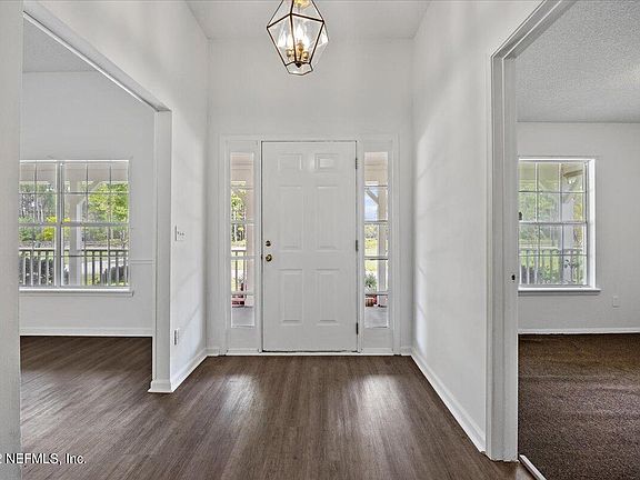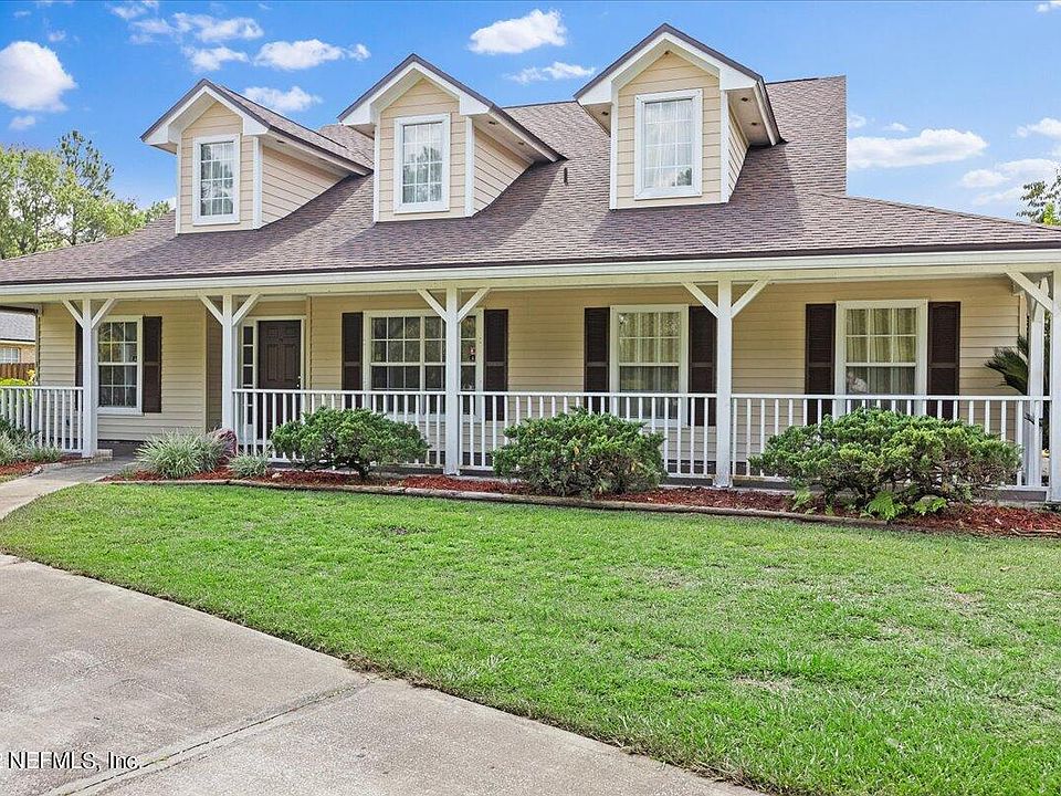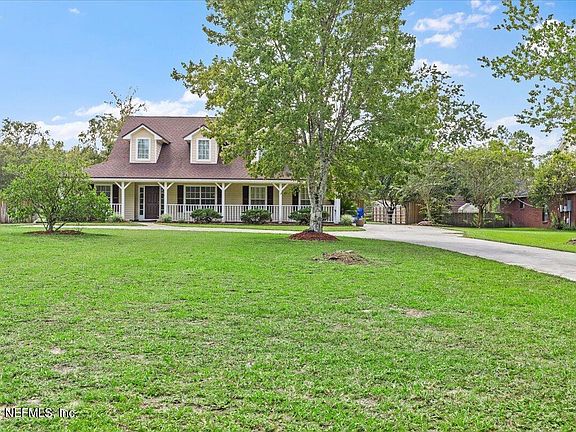 REDUCED!!!What an incredible opportunity, beautiful country home on over 3.5 acres with large pond, zoned for horses, zoned for horses, just minutes from Jacksonville! The home features covered front porch, split floor plan, large rooms, stone fireplace, high ceilings, oversized eat-in kitchen, and 21' X 21' Glass enclosed Florida Room, gutters.Both bathrooms have separate showers and tubs, fully equipped kitchen, inside laundry rm w/ washer & dryer, Ac is approx. 6yrs, vinyl flooring throughout ,Horse barn w/8 stalls, equipment shed, roof replaced 2021.