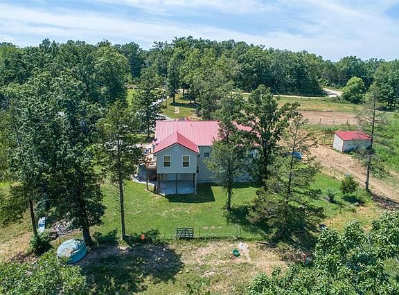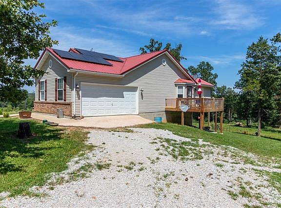 Here is that horse property that you have been looking for! This 13 year old ranch style home sits on over 8.6 acres and is perfect for the animal lover. 3 plus bedrooms/sleeping areas, 2 full baths and a roughed-in bathroom on the partially finished lower level, this home will accommodate a big family. There is a wood burning furnace that will heat the whole home and solar panels to help with keeping the energy bills low year round. A large living room and eat in kitchen with a main floor laundry make for easy living. There is a two car attached side entry garage and ample parking near the front of the home. Covered carport style outbuildings provide cover for hay and grooming areas for the animals. There is a round pen area (pen panels do not stay), a paddock for cover and there is access to a small creek at the very rear corner of the property. Located almost exactly in the middle between Potosi and De Soto this property provides multiple choices for shopping and dining. Call Today!