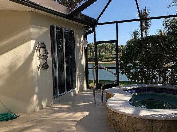 Once-in-a-lifetime opportunity to own this fully furnished, tastefully decorated, move-in ready Courtyard Villa on a quiet cul de sac! Lighthouse Bay at the Brooks; visit www.lighthousebay.com for details about this carefree lifestyle community! Features three bedrooms with master and guest suites, including a third bedroom adjacent to the guest suite; a screen-enclosed lanai and beautifully landscaped courtyard complete with relaxing waterfall and spa (new spa heater) all overlooking one of Lighthouse Bay’s tranquil lakes; fully-applianced kitchen, including dishes, glassware, cutlery, and utensils; counter bar; one outdoor and two indoor dining areas (3 dining sets); a spacious laundry with washing machine, dryer, and stationary tub; king bedroom set in master suite, twin beds in guest suite, futon sleeper, office desk, and computer desk in third bedroom; 2-car garage; all furniture, linens, towels, window dressings, lamps, pictures, greenery, accessories, power washer, gas grill, and other accoutrements too numerous to mention—even his and hers bicycles! 1816 square foot living area, 124 square foot lanai, 696 square foot courtyard, 390 square foot garage, total 3028 square feet of carefree living! Perfect for worry-free, immediate occupancy or as a turnkey investment property. Negotiable! Call for private showing 740-819-6747!