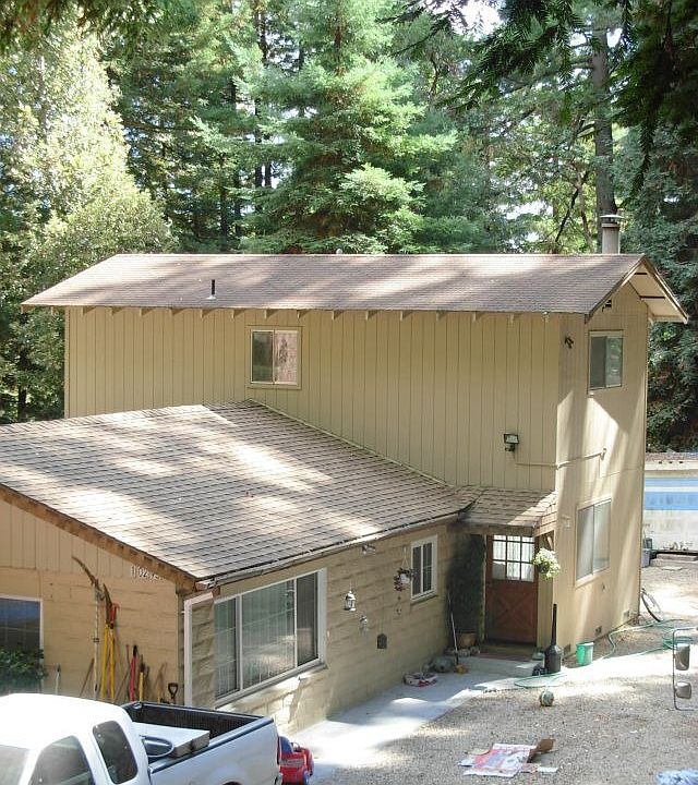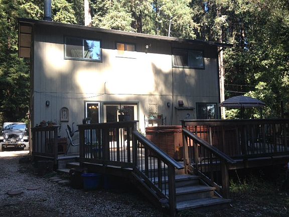 Wonderful woodsey Ben Lomond location! Easy two lane road and minutes to town. Beautiful large new deck made from just one tree. 50 year roof installed last year. Lots of flat parking area.Large Livingroom plus Familyroom/Dining area. Two bedrooms and one bath upstairs. One bedroom and bath downstairs. Sweet accessory building for artist studio/storage/workshop.