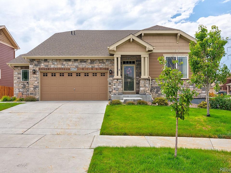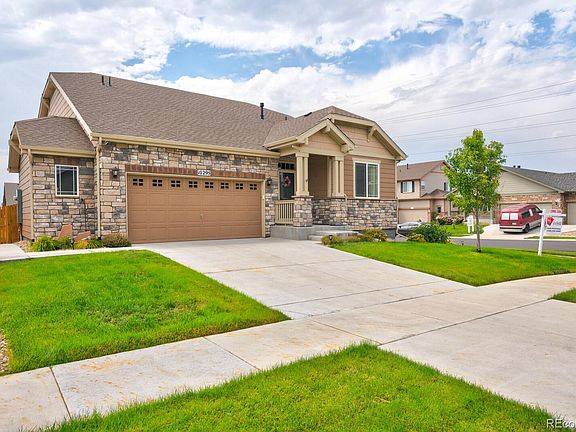 The Ranch home you have been looking for. With tremendous amount of space for your entertaining .Including a stunning Gourmet Kitchen and impressive Butlers Pantry. Open floor plan and vaulted ceilings give great ambiance to this home. The finished basement boasts spacious Wet Bar including dishwasher and wine refrigerator. Substantial recreation space including a Shuffle Board. Plenty of additional storage. Enjoy spectacular mountain and sunset views from the covered deck .Plus 36'X14.4 ' Stamped concrete patio. Appreciate nature at its best with second creek open space just steps away. Commuting made simple with easy access to both DIA and Downtown Denver.