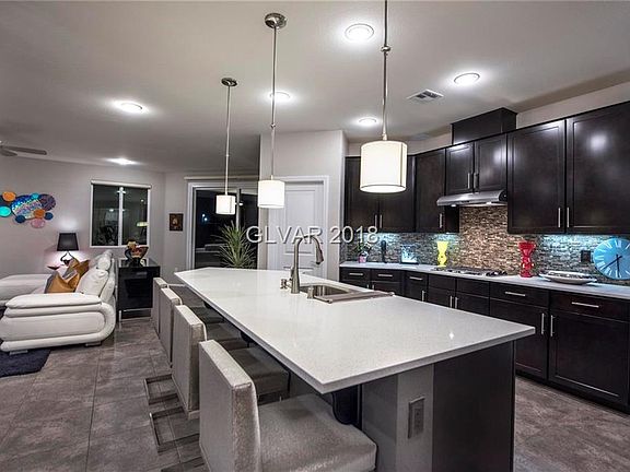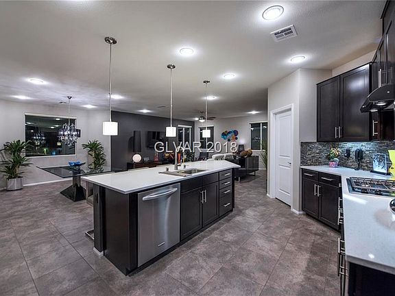 Shows better than a model, loaded with upgrades! Located in beautiful Summerlin South community! Perfect if you need a workshop or have a hobby with 3 car tandem garage w/sink, R15 insulation & 220V. whole house filtration, Alarm system. Microwave in pantry, BBQ, appliances, W/D, 5 TV's all stay. Low maintenance landscaping with synthetic grass, paver patio w/cover in backyard. Beautiful mountain views! Park/Playground just down the street.