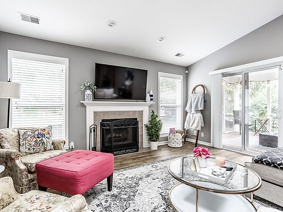 Hot location! Just 5 minutes to everything - Top Golf, Fishers District/YARD! This beautifully landscaped, low maintenance, ranch in popular Abbey Glen Village offer spacious, open concept, natural light, eat-in kitchen, with lots of cabinets, pantry, stainless steel appliances, backsplash, and upgraded laminate flooring. Formal dining, cathedral ceilings and wood burning fireplace in great room which opens to a large screened patio. Primary suite has 2 walk-in closets, separate tub/shower. 2nd and 3rd bedroom with guest bath. 2nd bedroom has walk-in closet. 3rd bedroom is perfect office space. New HVAC, 50 gal Water Heater, water softener, roof in 2017. Freshly painted; clean with happy vibes!