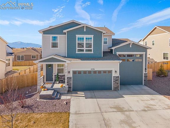 Built in 2023, this spacious 4-bedroom, 3-bathroom home in the Paint Brush Hills community combines modern design, mountain views, and the freedom of no HOA. Situated on a 9,100-square-foot lot with a landscaped front yard, covered front porch, and oversized RV garage, this home offers comfort and functionality for outdoor enthusiasts or anyone who needs extra space for toys and hobbies. Inside, you’ll find an open-concept main level with a white modern kitchen featuring a gas range, large single-level island, and plenty of cabinet space. The layout connects seamlessly to the dining and living areas, creating an inviting space for everyday living and entertaining. The main-level primary suite includes a walk-in closet, dual vanities, a stand-alone shower, and a private water closet. The laundry room is conveniently located just off the garage entrance. Upstairs, a spacious loft provides flexible living space for a home office, playroom, or media area. Each of the three secondary bedrooms includes its own walk-in closet, and the upstairs bathroom offers dual sinks, a separate toilet area, and another linen closet for additional storage. The garage is a true standout with a two-car bay plus a full-size RV garage that can accommodate large vehicles, a camper, boat, or multiple cars. The 6-foot privacy fence is already in place, and the backyard is ready for your personal touch. Create the outdoor space you’ve been dreaming of while enjoying beautiful Pikes Peak views. Additional highlights include central air conditioning, modern finishes, and a prime location near schools, parks, Antler Creek Golf Course, and the Shops at Meridian Ranch. Enjoy quiet suburban living with easy access to Colorado Springs and the freedom of no HOA. Bring your ideas, your RV, and your sense of adventure—this home offers the space, layout, and lifestyle flexibility buyers are searching for.
