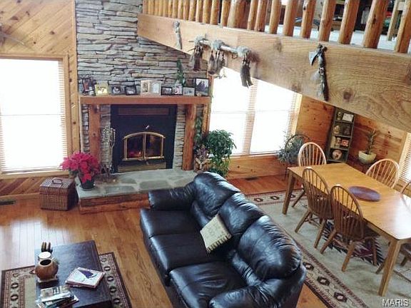 Fabulous Find! Secluded Country Get-Away. Perfect for horse lovers, hunters, gardeners or use as mini-farm. Beautiful log home with all the modern amenities. 2 tracts of land combine for over 12 acres of land. Some woods, some open. Catch a breeze and view of the woods from covered front porch. Features include: Soaring ceilings with skylights, knotty pine paneling, and 2 story stone fireplace that warms the house and reduces heating bills. Great open floor plan flows from entry foyer to living area to formal dining and custom kitchen. Walk out to deck. There is a comfy main floor bedroom and full bath. The rustic open staircase leads to a loft bedroom and den separated by full bath with laundry hook ups in the closet. Family and friends will enjoy the lower level recreation area and full bath. Walk out to huge patio, side yard and stone fire pit. Besides the house there is a 30x40 insulated garage/workshop with concrete floor and 50 amp electric. There is also a 20x16 shed with loft.