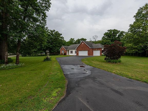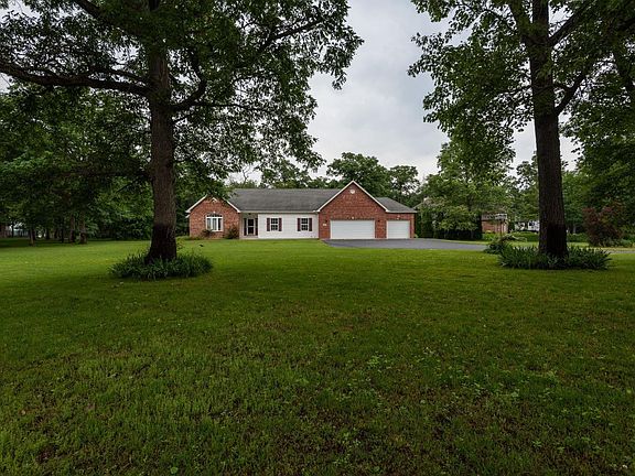 A chance to purchase in this HIGHLY DESIRABLE, ESTABLISHED subdivision! Rustling Oaks! Mature trees align the back yard and an irrigated 1 ACRE LOT!! Ranch with a HEATED AND COOLED 3 CAR GARAGE offers OVER 2000 finished sq ft! 9' ceilings Throughout! All the rooms and hallways are large! Large Foyer opens to a Flex space with a beautiful fireplace and vaulted ceiling, would make a fantastic Home OFFICE! Additionally a large Kitchen offering white cabinets with 42 top cabinets and pull outs in the lower cabinets! AND A PANTRY! Kitchen opens to an addt'l Living Room with sliding glass door to back yard and patio! Down the Spacious Grand Hallway offers 3 Bedrooms. Master Suite has a split bath arrangement for Privacy to soak in a relaxing tub! Bedroom #2 has a WALK IN CLOSET TOO! Home is positioned on a Corner lot, Large black top driveway on a quiet road! Near Schools, shopping and restaurants! Easy Commute to 49 or I-65! Solid house, needs little tlc