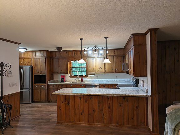 Beautiful home in the woods, just outside of town. Discover nature with a nice size pond, and pool for the kids to play in. Workshop/barn with 50 amp service. Places to park all your toys. Just over 3 acres of peaceful serenity. New appliances and flooring throughout within the past 4 years. This home features beautiful knotted pine cabinets in the Kitchen, and accents in the Dining Room, Family Room and bedrooms. The sunroom has a beautiful view of the pond, with large double pane picture windows. Come see nature at its best.