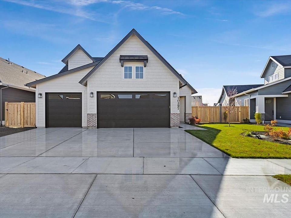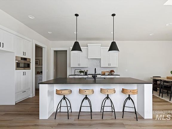 Welcome to the Albion Bonus by Alturas Homes, a beautifully designed 3-bed, 3.5-bath residence with a bonus room that can serve as a 4th bedroom. Its open-concept layout flows seamlessly, connecting the kitchen, dining, and living areas—ideal for gatherings or quiet relaxation. The kitchen stands out with custom cabinetry, a Bosch gas range, dishwasher, and built-in microwave. Vaulted ceilings in the great room and upstairs bonus room add an airy feel, while two low-maintenance patios extend your living space outdoors. Located in Nampa’s Arbor community, this home offers access to inviting parks, walking trails, and a close-knit neighborhood that complements your lifestyle with ease.