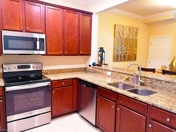 This stunning waterfront townhouse in the gated community of Marbellella on Cypress. With easy close to I-75, Colonial Blvd, and all the shopping centers this area offer. This 3 bedrooms, 2 1/2 bath, 1 car garage unit has plenty of living space. The kitchen has stainless steel appliances, 42-inch cabinets, granite counter tops. There is tile throughout the first floor, carpet in the stairs and 2nd floor, crown molding throughout, with an unobstructed view of the lake in the master bedroom. Enjoy your morning coffee and all the breathtaking sunsets Southwest Florida has to offer in your screened lanai. tile roof, and hurricane shutters. Some of the amenities this community offer are resort style swimming pool, a big clubhouse, and a theater.