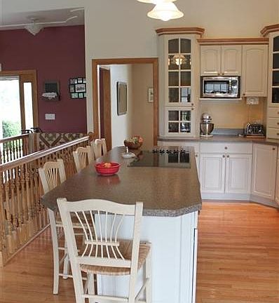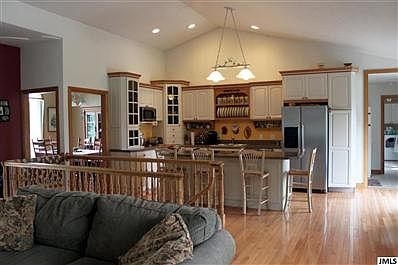 Fabulous Country sub with view of Hankerd Hills Golf Course. Solid Oak trim and doors, Oak wood floors, Great room with cathedral ceilings. Kitchen cabinets are Decora with decorative crown moulding and rope moulding, open plate shelf, some glass front doors and island with seating. Laundry with large counter workspace. Deck off dining area overlooks 9' deep heated in-ground pool. Concrete patio extends from walkout basement. Basement is finished with wet bar, large family room with wood stove heater and possible 3rd bedroom with full bath. Perfect for separate living space. Workshop area off
