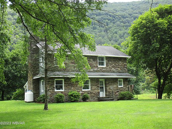 A true gem in the Endless Mountains!! Peaceful, breathtaking 21.6 acre property with Lycoming creek frontage AND it BORDERS state game lands. The stone front house and mountain stone fireplace welcome you into the open concept living room adorned with hardwood floors and log ceiling with beams. A completely new kitchen with stainless steel appliances granite countertops and new cabinets will make you want to cook all day!! The creek is crystal clear and the views of the mountains and trees are exquisite-close to the coveted Rock Run & McIntyre Wild Area. High Speed internet is available! All OGM's convey! A brand new micron UV system is being installed on the well. This is truly a MUST SEE!! Call Dee today at 570-337-5677 for your private showing.