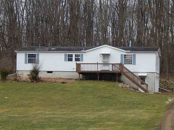 Great Opportunity, Country Setting! 3 bedroom, 2 full bath home located in Western School District. This home is set perfectly on wooded lot of 4+ acres with deck off back of home that leads to open woods. Large kitchen offers island with eat-in area, as well as dining room that opens up to large living area. You will love the natural lighting that flows in from the windows throughout the home. Spend time by the beautiful fireplace while overlooking the woods from the comfort of your couch or deck. Full basement with large 2 car attached garage. Appliance package and Furniture available at additional cost.