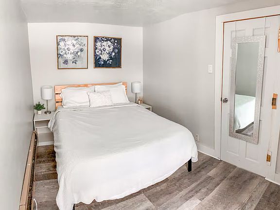 Beautiful, cozy 1 bedroom / 1 bath fully furnished apartment right in the heart of the village of Sackets Harbor. There is a queen sized bed in the bedroom with a 42" tv and a pull out futon in the living room. Located within a 5 minute walking distance to downtown shops, restaurants, bars, boat launch, marina and less than 2 blocks from a public waterfront area. Driving distance of only 10 miles to the city of Watertown and Interstate 81. Private entry and driveway. Heat, utilities, WiFi, lawn care, snow removal, and trash are all included.