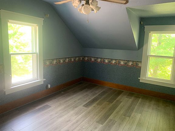 Cute and affordable 2 story on 4 lots! Oversized 2 car garage. 4 bedrooms up and 1 on the main floor. Enclosed porch-full basement-peaceful country living set right in town. Home is being sold "as is" by estate.