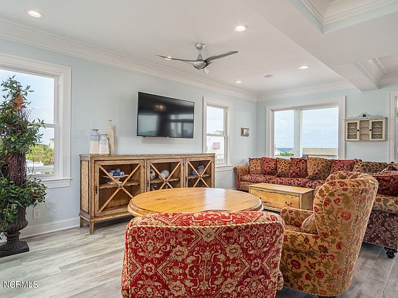 No Flood Insurance Required! Discover the epitome of luxury living in this stunning Emerald Isle home, perfectly positioned for breathtaking water views! Situated 3rd row from the ocean side and 2nd row from the sound side, this magnificent four-story residence offers impressive space, beautiful renovations throughout, and the convenience of an elevator for easy access to all levels. On the bottom level, you will find a spacious 2-car garage, a recreation room, and an outdoor shower. Moving up to the 2nd floor, the home features three beautiful bedrooms, two full bathrooms, and a convenient laundry room. The 3rd floor boasts an open floor plan filled with natural light. The living room is spacious, offering stunning views and seamlessly connecting to the kitchen, which includes a breakfast bar, stainless steel appliances, a pantry, and plenty of cabinet and counter space. On the top floor, there is a formal dining area open to a versatile bonus room, a kitchenette area, and another full bathroom. Each level of the home offers a deck with amazing views, enhancing the luxurious feel of this remarkable property. All furniture is negotiable. Don't miss the chance to experience luxury living with water views in beautiful Emerald Isle! Call us today to schedule your private tour!