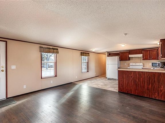 This home has five bedrooms and 2 full bathrooms. Open kitchen/living room area. It is situated on a corner lot right in town and close to the schools. Covered porch on the front. Could be a great investment property! Home is not on a permanent foundation.