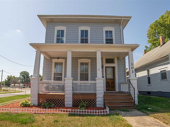 Ample space plus a convenient location await you with this generous 4-5 bedroom, 2 full bath two story corner lot aluminum sided traditional style home! Main floor features an inviting foyer host to a charming curved open staircase, comfortable living room, extra large dining room with a classic bright and airy bump out, equipped eat-in kitchen with an adjacent pantry, master suite host to a private full adjacent bath along with an adjacent walk-in closet, optional fifth bedroom/den with a neat built in (room does not have a closet), and an enclosed back porch. Upstairs, you will find three additional nice sized bedrooms along with a second full hall bath. Property also features a large basement complete with a radon mitigation system in place, covered front porch, two car detached garage with rear alley access along with adjacent off-street parking, newer architectural roof along with flat roof section (2018), and all appliances to remain upon settlement for new owner(s) including washer and dryer. Within walking distance of historic downtown Lincoln along with various additional amenities and local schools, 103 6th Street is turn key move-in ready and has been priced to sell!
