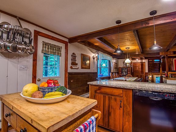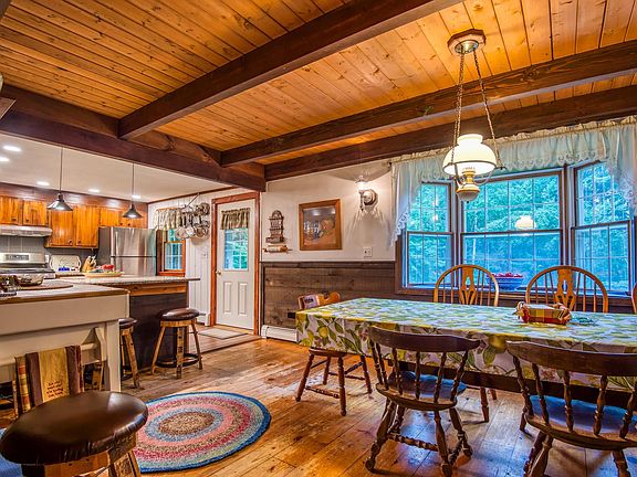 ACCEPTING BACKUP OFFERS! This Gambrel style home, strategically located on the edge of Bartlett, offers the dual advantages of low taxes and close proximity to North Conway's amenities and the slopes of Cranmore Mountain! For downhill skiing enthusiasts, the convenience to the mountain is unparalleled – wake up, savor a cup of coffee at the breakfast bar in the kitchen with custom wood cabinets, and within minutes, take your first exhilarating run down your favorite trail. This property caters not only to downhill enthusiasts but also to cross-country skiers. Nestled against conservation land, it beckons you to explore and enjoy the serene beauty right from your backyard. Then after a day of play, return home to warm up by the wood stove in the living room or relish a hearty meal in the dining area, generously accommodating a table for eight. The first-floor primary bedroom, featuring its own slider to the back deck, ensures privacy from the three additional guest bedrooms located upstairs. This layout provides ample space for family or visitors while allowing you to enjoy a tranquil retreat in your own private sanctuary. The unfinished basement provides potential for expansion, and the spacious 1.2-acre lot offers both privacy and room to build a garage if needed. This home seamlessly combines comfort and adventure, making it a haven for those who appreciate both. Schedule a private tour today to experience the unique lifestyle this property has to offer!