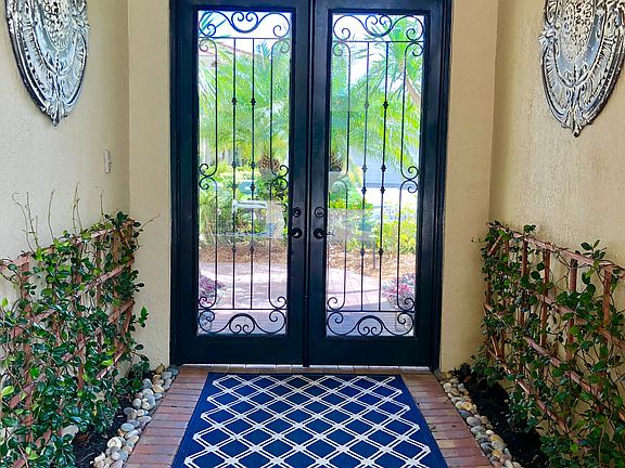 Exquisite fully furnished, turnkey courtyard home located in Frenchman's Reserve, an exclusive gated golf and tennis community in the heart of Palm Beach Gardens, Florida. Upon entering the elegant french doors to the property, you feel as if you have entered an oasis with your first views of the clear blue pool & spa, sounds of a free flowing fountain, & a perfect blend of custom outdoor decor creates an inviting area of relaxation between the main residence & the separate guest residence.High ceilings & tall glass windows & doors allow the sunlight to illuminate every room. This home boasts a newly renovated kitchen with stainless steel appliances, gas cooktop, walk in pantry, a large island that opens up to the family room.