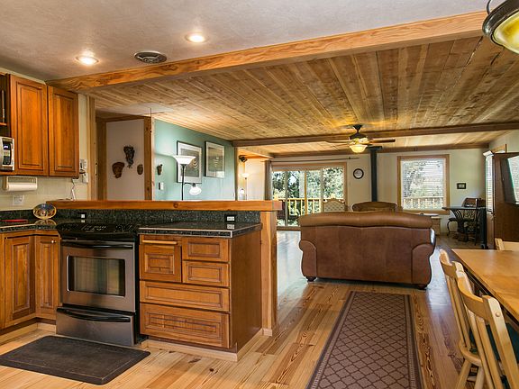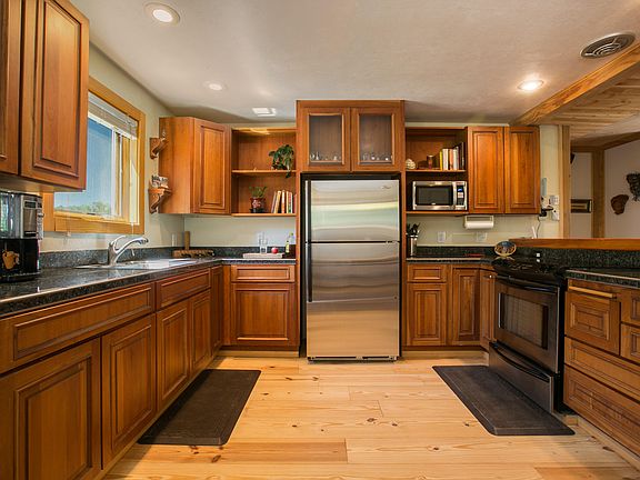 An incredible home with magnificent views, and spectacular indoor/outdoor access on both levels makes it very convenient to enjoy inside and outside activities. The 3/4-inch hardwood flooring, on the main level, has in-floor radiant heat. The home has been well maintained and loved. The forest setting bestows a camp like setting, with natural habitats, surrounding the home and the 1.85-acre lot. There are fenced spaces with raised gardens, and an established greenhouse for organic gardening. For a small fee, family and friends can enjoy the four community ponds that offer many water activities like swimming, kayaking, and fishing. Not too far down the road there is access to forest land, offering many chances for outdoor adventures like cross country skiing, hiking and
